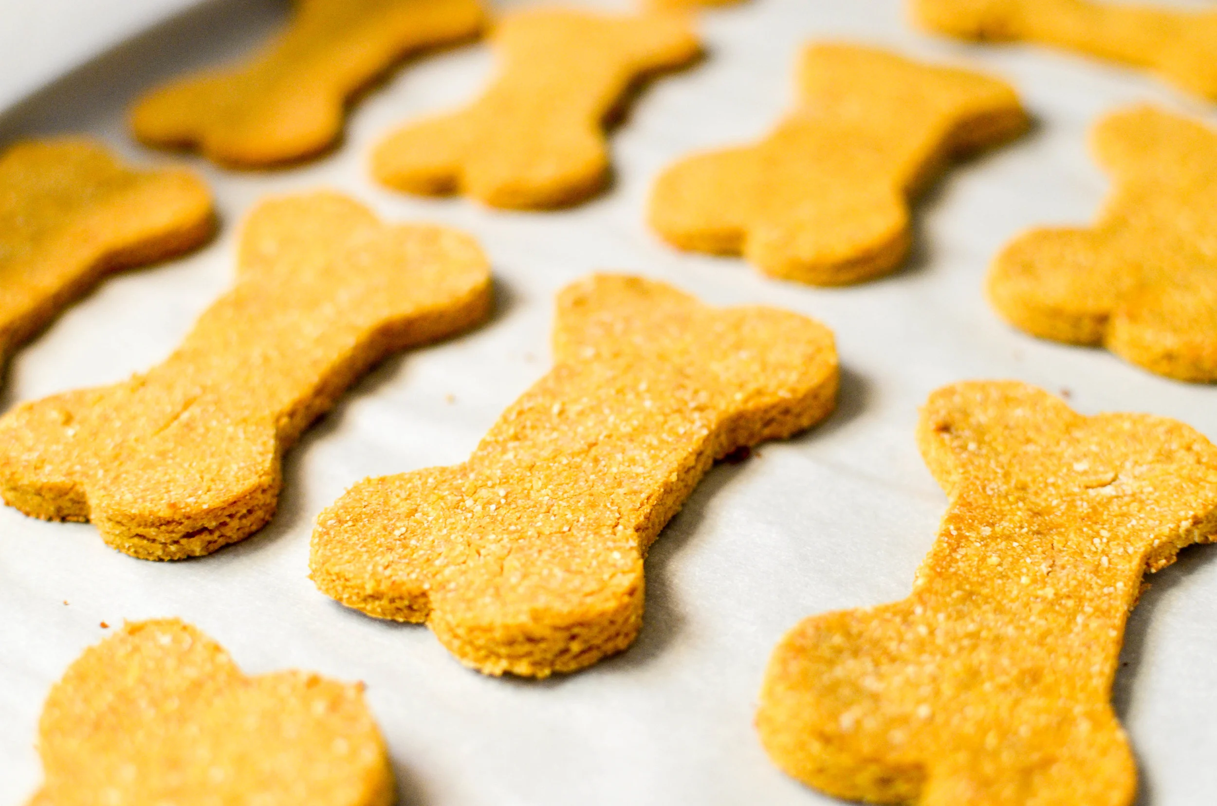hugo and po eat a clean diet. they probably eat better than me. so with their birthdays around corner, i wanted to make them their treats. there are several store bought treats that follow their diet, but i like knowing exactly what i'm feeding them and that's what i loved about this recipe. it's just three simple ingredients: peanut butter, pumpkin and coconut flour.